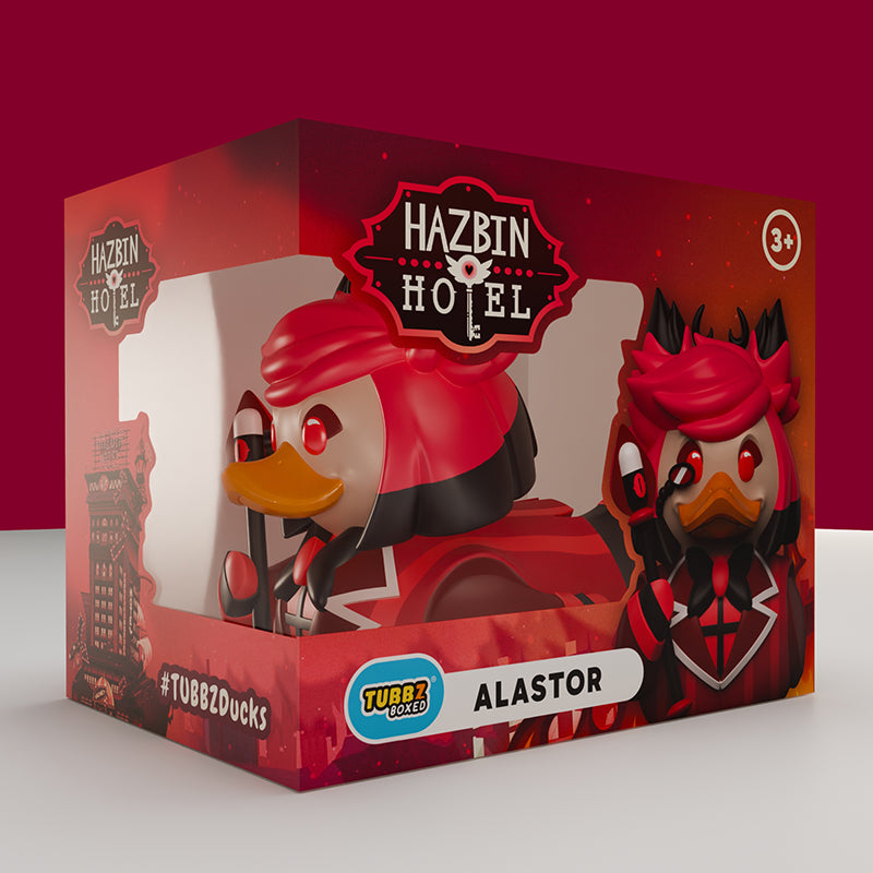 Housed in a sleek, stackable display box featuring official Hazbin Hotel artwork and a front-facing window, he’s ready to bring some charming chaos to your collection.
