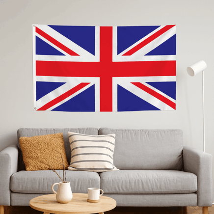 These Union Jack flags come with two metal eyelets and double stitched seams.