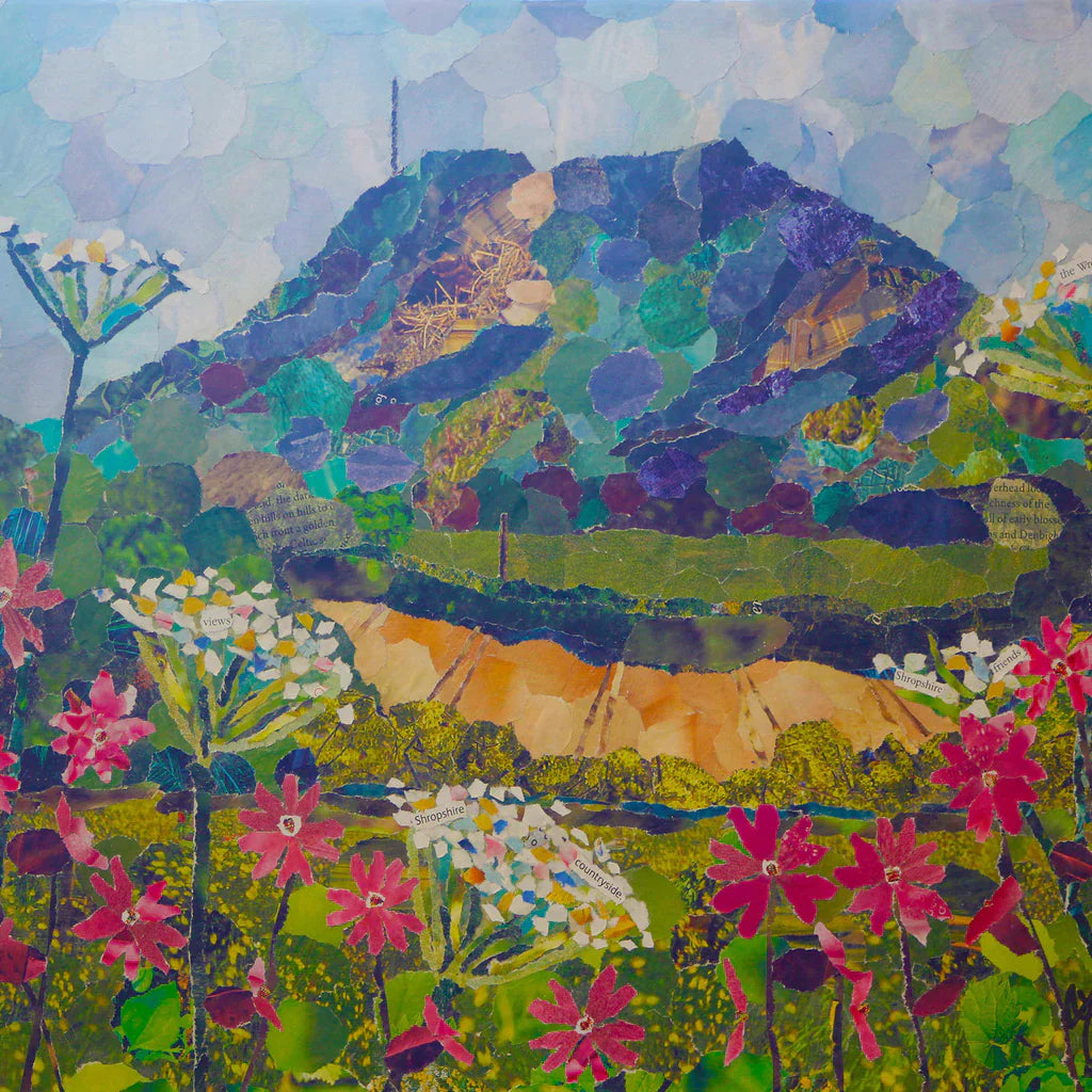A blank greetings card of The Wrekin, Shropshire taken from an original paper collage. This comes with a white envelope.