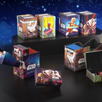 The all-in-one casual solution for Star Wars™: Unlimited players. This full color printed and officially licensed deck box is packed with ingenious features. It protects a full double-sleeved deck of cards and includes an innovative token box! This token box has a smart click-lock mechanism to keep all tokens safely stored – even while pulling it out. Once opened, the lid of the box stays upright for convenient access during gameplay.
