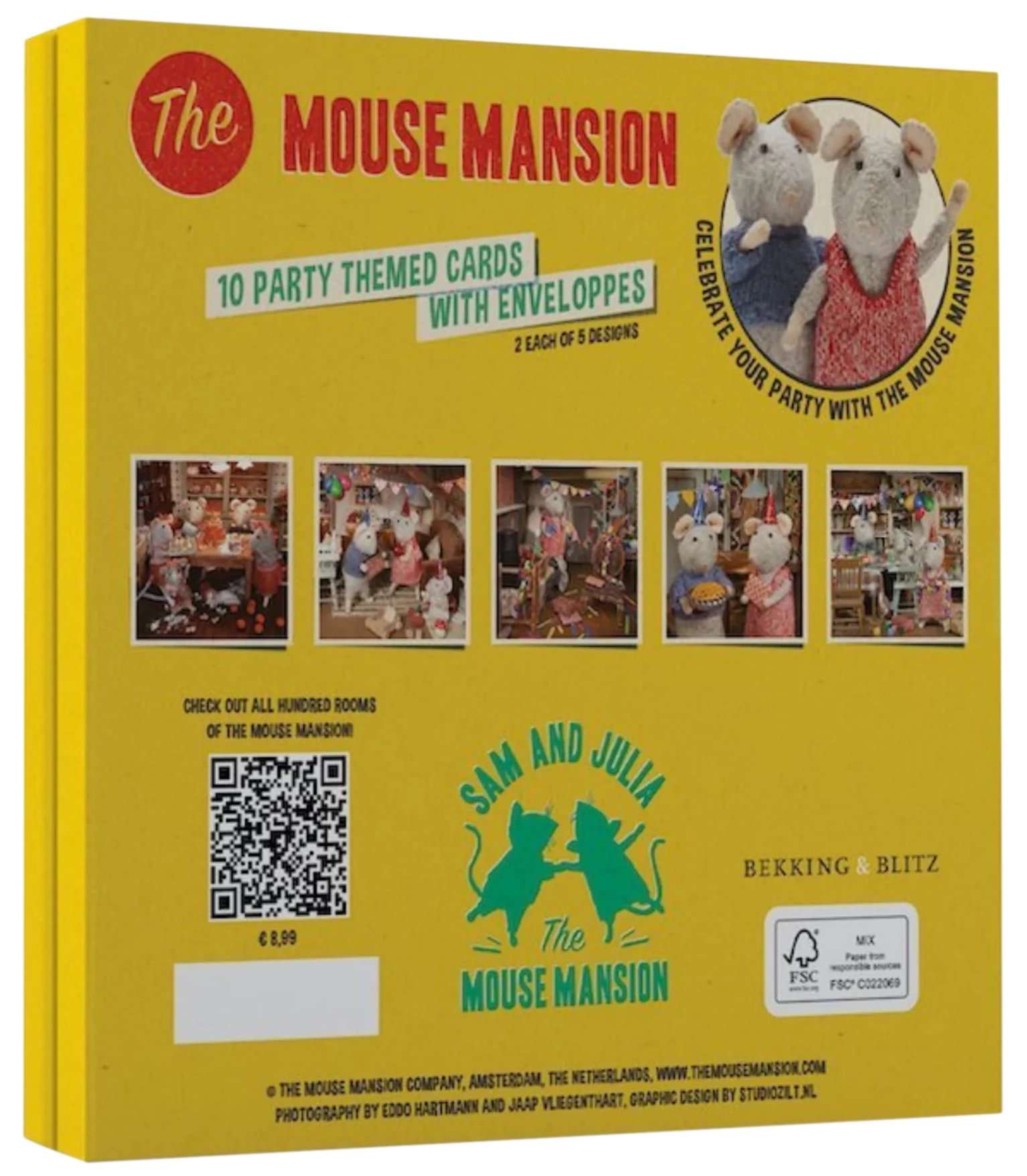 Looking for some very special Cards? This set of 10 luxury folding cards comes with envelopes and the most festive pictures of the Mouse Mansion.