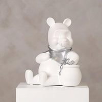 A Pooh Bear money box from DISNEY. This substantial money box features the iconic pair holding hands back-to-back. This resin sculpture is a contemporary styled, statement figurine. The money slot is located at the back, with an easy-to-remove rubber plug on its base for retrieval of funds. Designed to celebrate the true magic of Disney on its centenary year, and a true collector piece. The money box is packaged in a gift box.