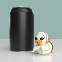 Gollum has taken on an unexpectedly adorable new form as a Mini TUBBZ! This pint-sized collectible perfectly captures the eerie yet endearing look of the infamous ring-obsessed character - complete with pale skin, big, haunting eyes, and a few strands of hair. Clutching a fish, this mischievous little duck is ready to sneak into your collection.